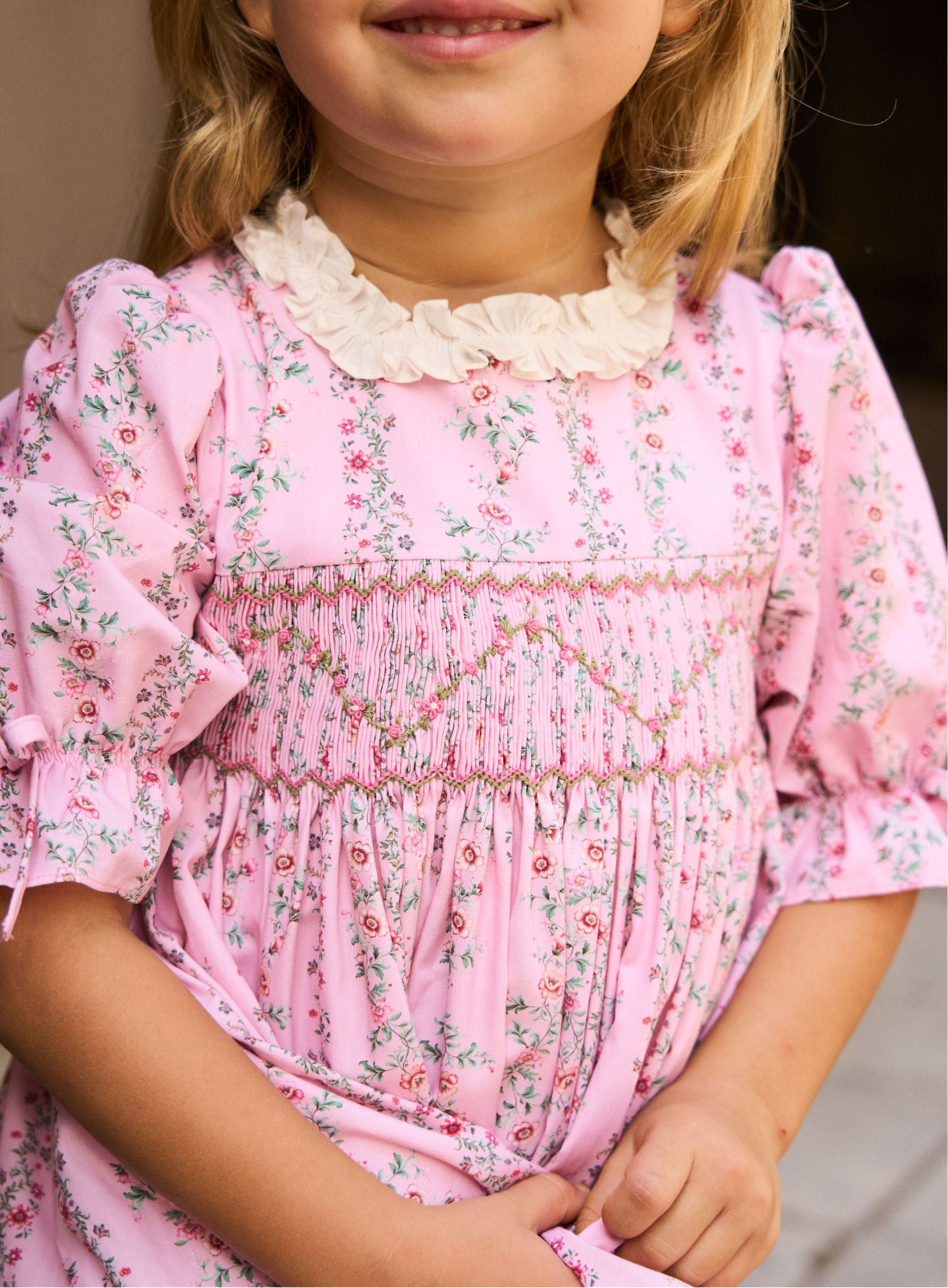 Pink Garland Floral Penelope Girl Hand-Smocked Dress